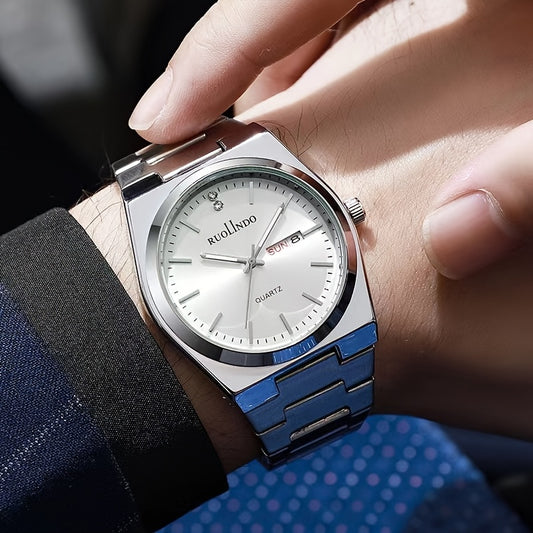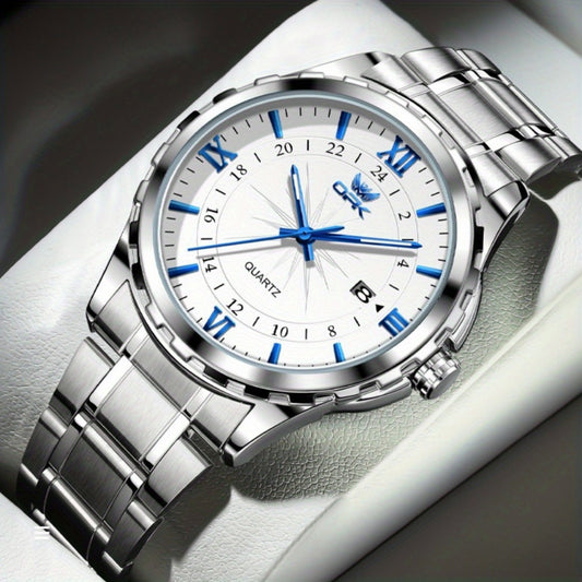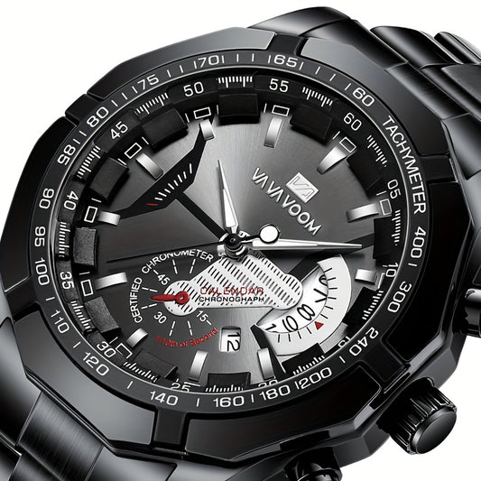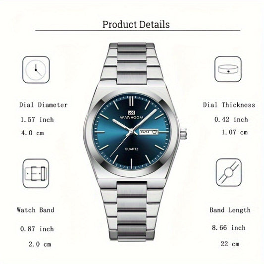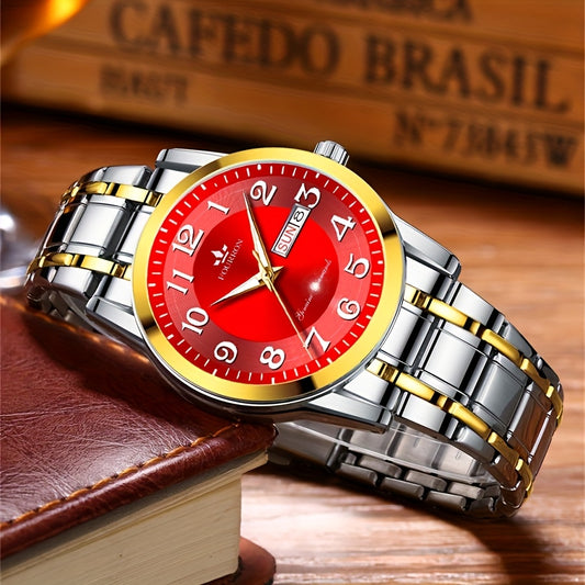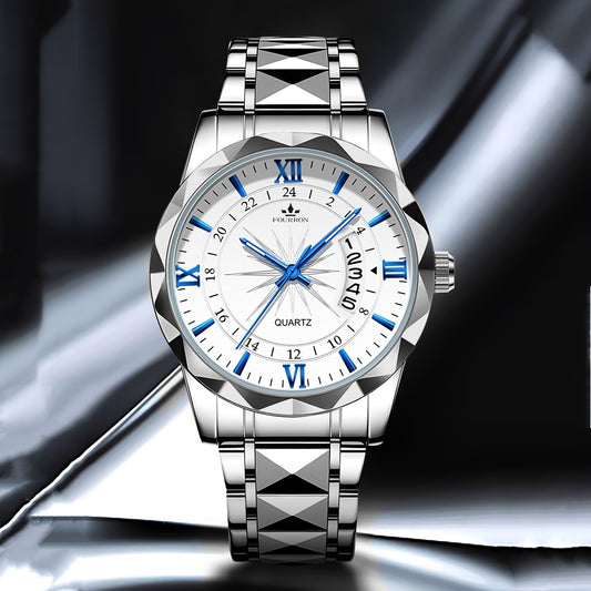 FOURRON Men's Quartz Watch - Trendy and Fashionable Appearance Stainless Steel Band with Luminous & Date Display, Ideal Gift for Birthdays & Holidays, Sunday Calendar Display, Multifunctional Watch, Casual Fashion, Gift for R
