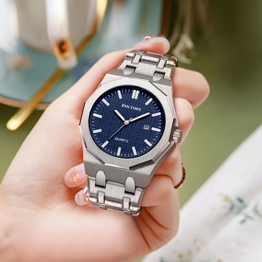 1 հատ նորաձև, չժանգոտվող պողպատից պատրաստված, բարձրակարգ մթնոլորտ, շքեղ, էլեգանտ, գործնական, ճանապարհորդական, հանգստի, պարզ, բազմակողմանի, տղամարդկանց և կանանց քվարցե ժամացույց՝ ամսաթվով