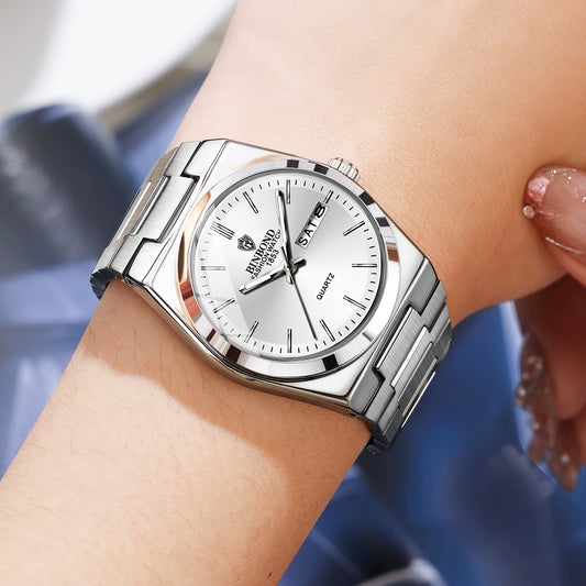 BINBOND նորաձև ամուր չժանգոտվող պողպատե ճարմանդով տղամարդու գործնական, առօրյա քվարցային ժամացույց, բարակ, կրկնակի օրացույցով, տղամարդու ժամացույց