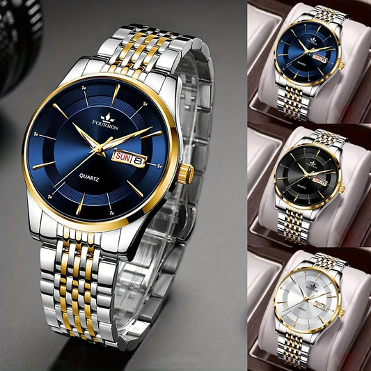 POEDAGAR նոր տղամարդու չժանգոտվող պողպատից քվարցային ձեռքի ժամացույց, լուսարձակող օրացույցով տղամարդու ժամացույց, իդեալական ընտրություն նվերների համար
