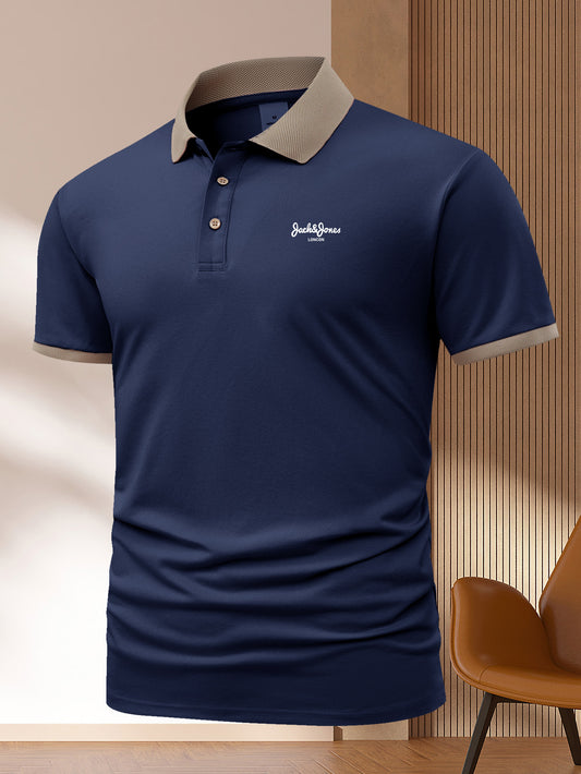 Տղամարդկանց սովորական գոլֆի վերնաշապիկ, 100% պոլիեսթեր տրիկոտաժե գործվածք, երկրաչափական նախշով, կոճակով օձիք, սովորական պիտույք, ամառային կարճ թև վերնաշապիկ՝ մուգ կապույտ, բաց կանաչ, խակի, սև