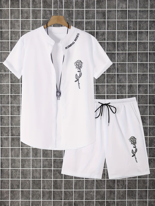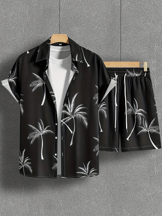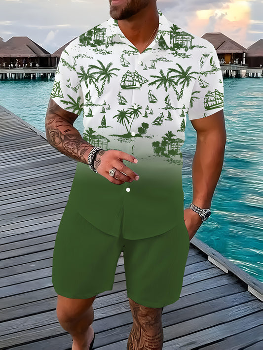 2 հատ տպագիր տղամարդու ամառային կարճ թևքերով կոճակներով վերնաշապիկի և շորտերի հավաքածու