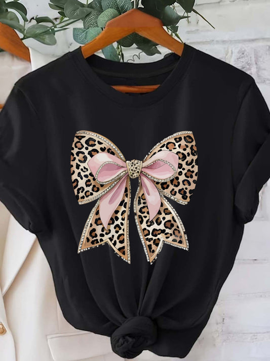 Կանացի ընձառյուծի նախշերով ժապավենաձև շապիկ, կարճ թևքերով, կլոր վզնոցով, ամենօրյա վերնաշապիկ՝ գարնանային և ամառվա համար, նորաձև վարդագույն գրաֆիկական շապիկ՝ ոսկեգույն զարդարանքներով, կանացի շապիկներ
