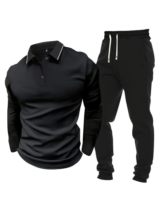 Տղամարդու երկկտոր առօրյա հագուստ - սև կոճակներով վերնաշապիկ և տաբատ, երկար թևքերով, ազատ չափսերով, չձգվող գործվածքով, իդեալական է գարնան/աշնան համար, առօրյա հագուստ | ազատ չափսերով | կոճակներով վերնաշապիկ