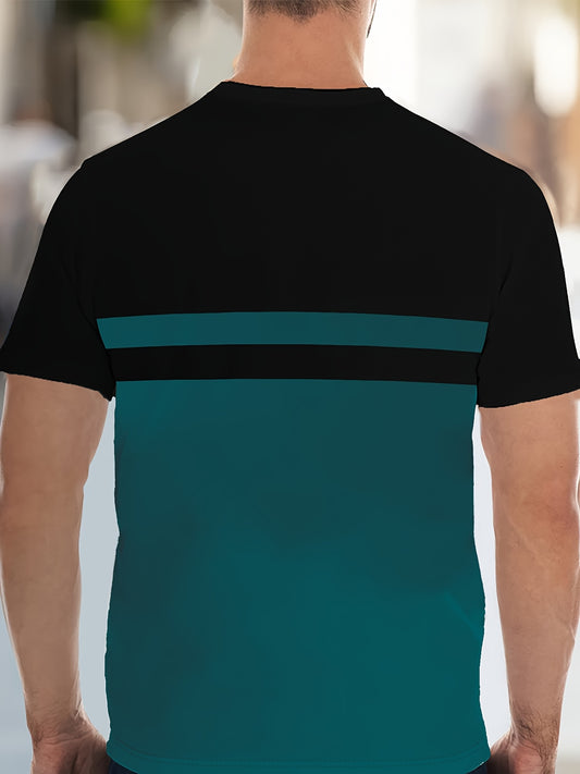 Տղամարդկանց նորաձևության գրադիենտային նախշերով, կլոր վզնոցով, կարճ թևքով մարզաշապիկ և տաբատ, երկու մասից բաղկացած հավաքածու՝ բացօթյա սպորտի համար