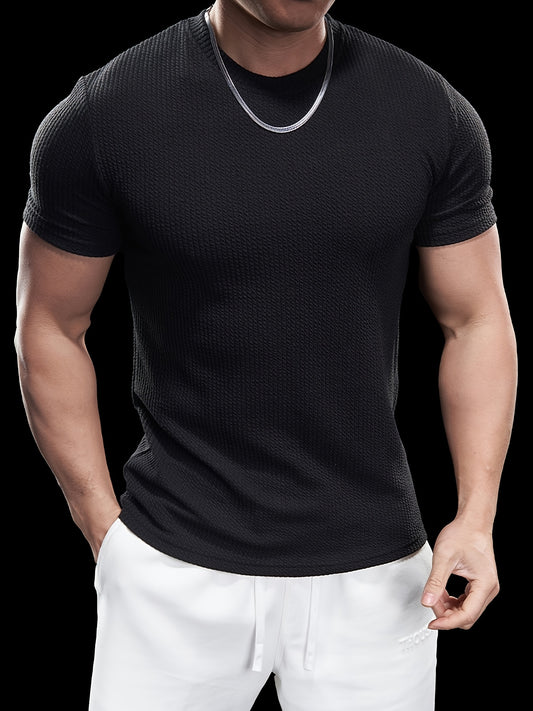 Տղամարդու նեղ, ձգվող, կարճ թևքերով, սև, միագույն, ամառային, սպորտային մարզաշապիկ՝ ամենօրյա հագուստի համար