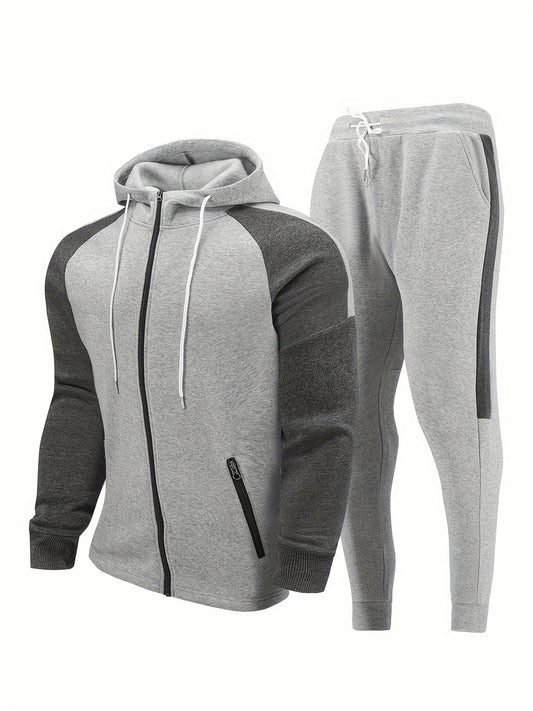 Դասական տղամարդու սպորտային 2 հատ գունային բլոկներով մարզահագուստի հավաքածու՝ առօրյա լիարժեք կայծակաճարմանդով, երկար թևքերով վերնաշապիկով և վազքի տաբատով, մարզասրահի, մարզումների, վազքի համար