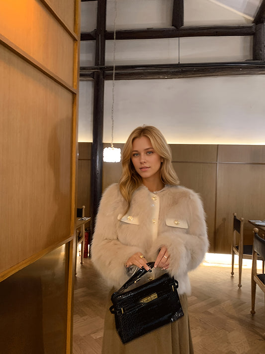 Women's Elegant White faux fur coat - Luxury Winter Outerwear with Single-Button Closure, Machine Washable Cold-Weather Jacket for Evening Events, Parties & Everyday - Chic Winter Coat for Women (Solid Color, O-Line Silhouett
