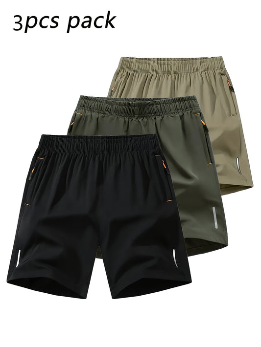 Տղամարդու առօրյա և նորաձև արագ չորացող շորտեր՝ երեք փաթեթով, կայծակաճարմանդ գրպաններով և պարանով, հարմար է բացօթյա սպորտի համար