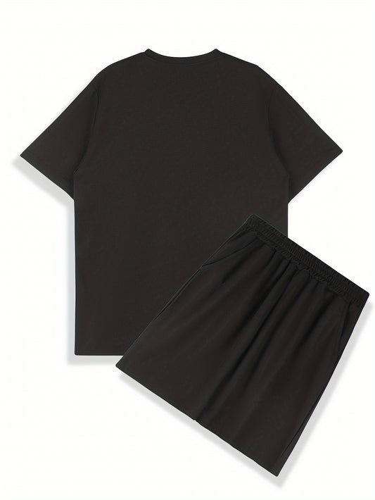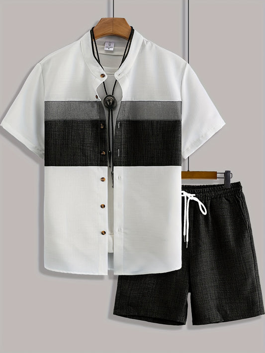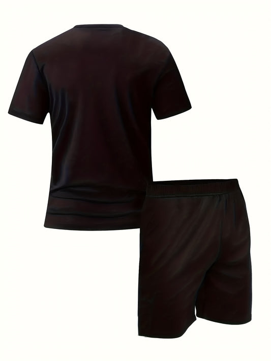 [2հատ Տղամարդկանց պատահական սպորտային կոստյումներ Print] 2հատ Տղամարդկանց ամենօրյա սպորտային կոստյումներ, պոլիեսթեր պարանոցով վերնաշապիկներ և շորտեր, Հարմարավետ տրիկոտաժե գործվածք՝ թեթև ձգվող, պրինտ դիզայնով, ամառային հանդերձանքի հավաքածուների համար