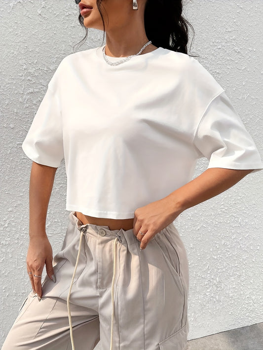 Կանացի էլեգանտ բաց մոխրագույն կարճ թևքերով կլոր վզնոցով մարզաշապիկ - փափուկ, միջին ձգվող գործվածք, լվացքի մեքենայով լվացվող, բազմակողմանի, բոլոր եղանակների համար նախատեսված առօրյա վերնաշապիկ, առօրյա հագուստ, նրբագեղ ոճ, հարմարավետ չափս
