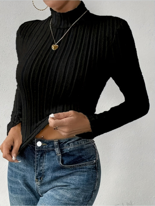 Նորաձևության շերտավոր պարզ բարձր օձիք երկարաթև վերնաշապիկ տրիկոտաժե պուլովեր