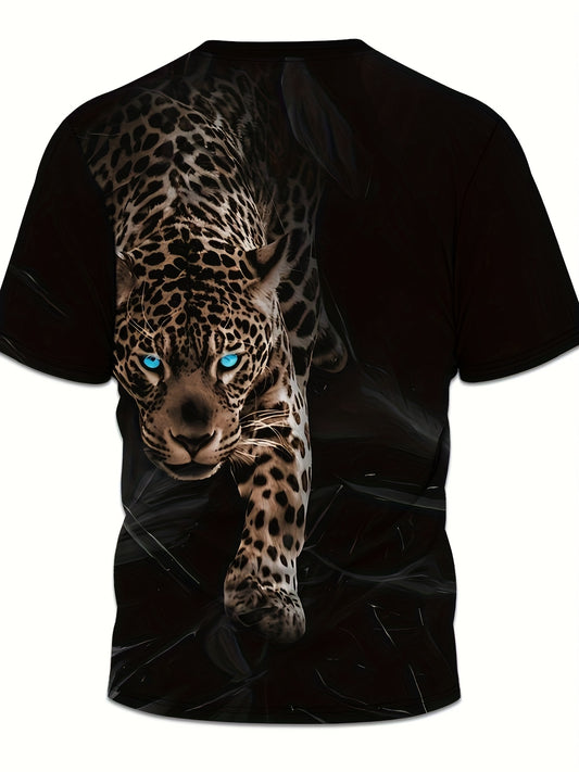 Տղամարդկանց սև բամբակյա շապիկ վառ արտահայտված ընձառյուծի դեմքի պատկերով - կարճ թևերով, կլոր պարանոցով, ամենօրյա կրելու համար, թեթև ամառային վերնաշապիկ մարզասրահի, աշխատանքային հագուստի համար - մեքենայով լվացվող, վառ կենդանական նախշով, հարմարավետ ֆիթով: