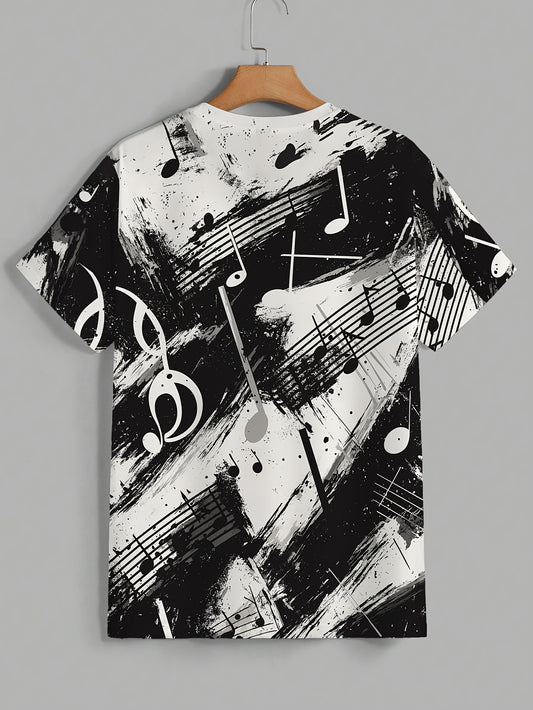 OBM տղամարդու կարճ թևքով կարճաթև շապիկ՝ երաժշտական նոտաների նախշերով, 100% պոլիեսթեր, շնչող ամառային շապիկ, սովորական չափսի, լվացվող մեքենայով, երաժշտական թեմատիկ հագուստ, հարթ հյուսվածքով գործվածք