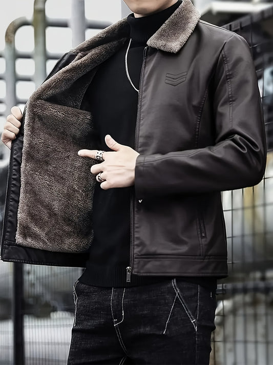 Men's Windproof Winter Jacket with Fleece & Collar, Zippered Pockets, Warm Coat for Skiing, Hiking, Motorcycle Riding - Hand Washable Cold Weather Outerwear (Black/Brown), Winter Clothes Men, Bomber Jackets For Winter, Mens W