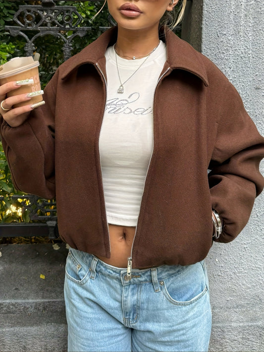 Women'S Casual Zippered Front Drawstring Hem Jacket - High-Neck Long Sleeve with Pockets, All-Season Comfort, Machine Washable, Versatile for Casual Attire, Casual Wear Jacket | Highneck Jacket | Zippered Jacket