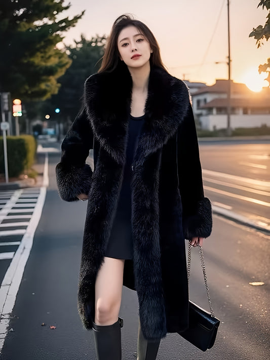 Կանացի էլեգանտ ձմեռային վերարկու՝ շքեղ արհեստական մորթուց պատրաստված աստառով - մեծ չափսի երկարավուն H-Silhouette վերարկու, լայն օձիք և միագույն դիզայն, 100% պոլիեսթեր՝ առօրյա և պաշտոնական հանդերձանքների համար