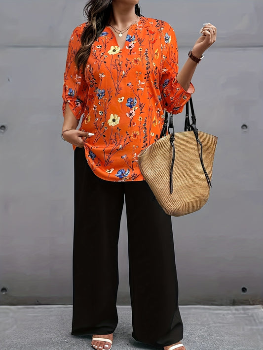 Մեծ չափսերի համար - Մեծ չափսերի կանացի արձակուրդային ոճի ծաղկային վերնաշապիկի և տաբատի հավաքածու