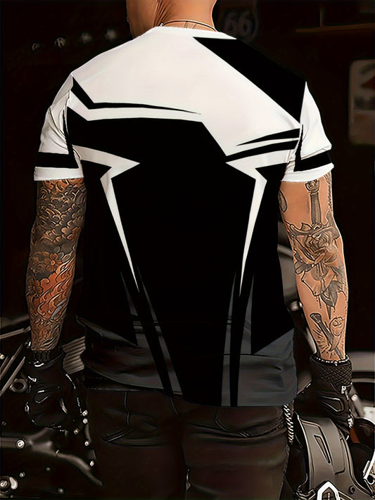 Տղամարդու երկրաչափական նախշերով շապիկ՝ սև-սպիտակ կոնտրաստային դիզայնով, շնչող 100% պոլիեսթեր, սովորական չափսի ամառային մարզաշապիկ, լվացվող մեքենայով
