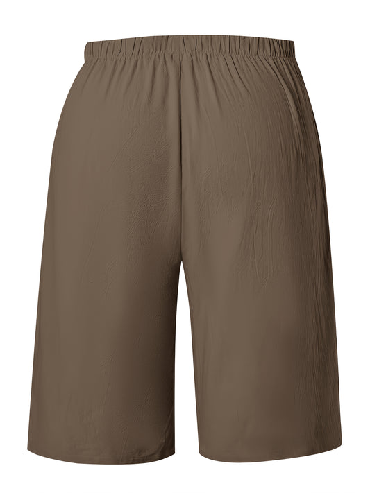 Կանացի լողափնյա շորտեր՝ արհեստական պարանով - թեթև պոլիեսթեր, պինդ շագանակագույն, մինչև ծնկների երկարություն, հանգիստ տեղավորվում է, լվացվում է մեքենայով, բոլոր սեզոնային հագուստ, ամենօրյա ամառային հագուստ | Ծնկների երկարությամբ շորտեր | Պոլիեսթեր շորտեր