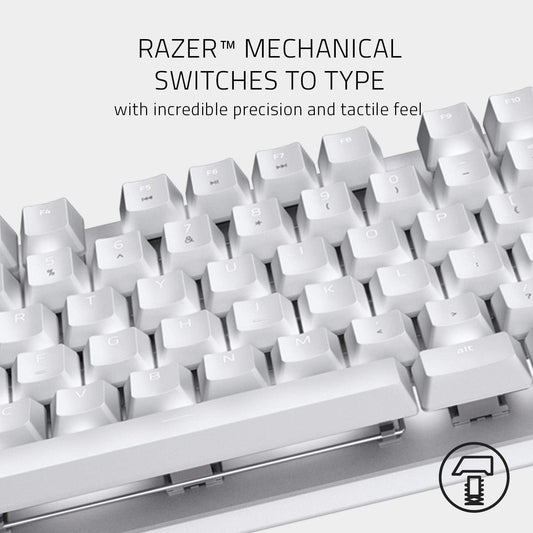 Razer Huntsman Mini (Purple Switch) - կոմպակտ 60% խաղային ստեղնաշար (սեղմելով օպտիկական անջատիչներ, Doubleshot PBT ստեղնաշարեր, շարժական USB-C մալուխ) QWERTY US Layout | Մերկուրի Սպիտակ