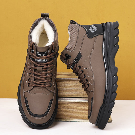 Men's Snow Sports Training Shoes for Autumn and Winter, Featuring a Plush-lined Thick Design for All-over Comfort. Soft, Light Beige-friendly, and Thickly Insulated for Warmth, Suitable for Various Winter Leisure Activities.