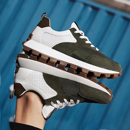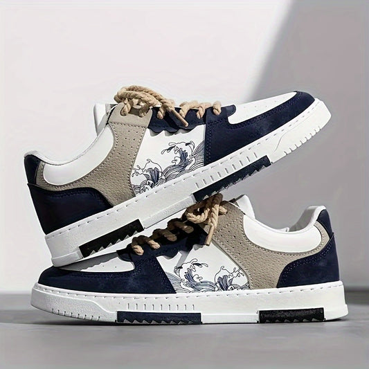 Տղամարդկանց շքեղ փողոցային ոճի գունավոր բլոկներով սքեյթբորդ կոշիկներ, հարմարավետ հակասահք, ժանյակավոր սպորտային կոշիկներ, հարմար տղամարդկանց բացօթյա գործունեության համար, տղամարդու կոշիկներ