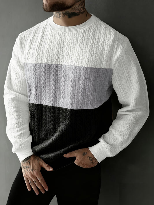 Նոր աշնանային և ձմեռային տղամարդու սվիտեր՝ ժակարդի փոքր սրտիկներով գործվածքից, հարմար է սպորտի, հանգստի, վազքի և ֆիթնես մարզումների համար, ունի երկար թևքեր։