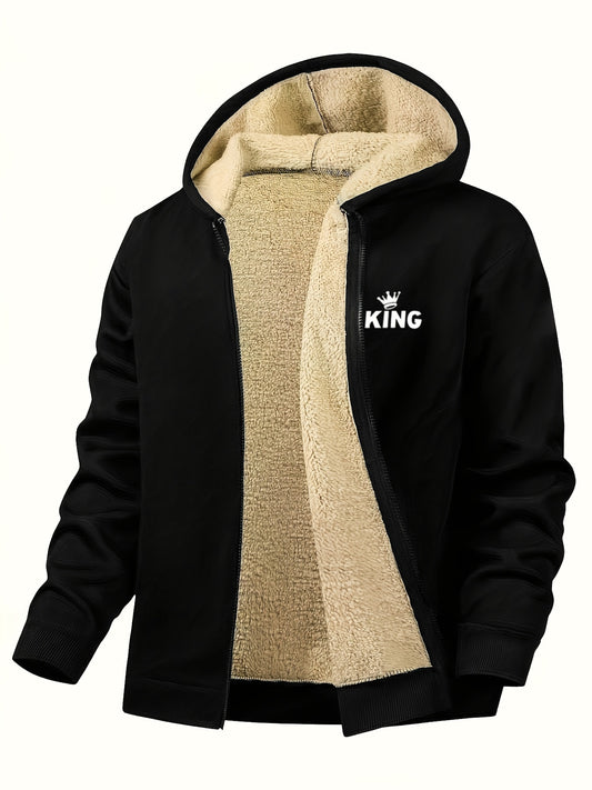 Առօրյա գլխարկով բրդյա բաճկոն «KING» նախշով, կայծակաճարմանդով, երկար թևքերով, սովորական չափսի, աշուն/ձմեռ բացօթյա սպորտաձևերի համար նախատեսված վերարկու, առօրյա վերարկու, դեռահասի համար, դեռահասի համար, դեռահասի համար