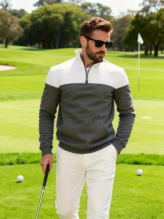 Տղամարդու աշնանային և ձմեռային կիսաճտքավոր սպորտային սվիտեր՝ հարմար մարզումների, վազքի և ֆիթնեսի համար, ոճային և հարմարավետ դիզայնով, փոքր վանդակավոր կանգնած օձիքով և հասանելի է մեծ չափսերով։