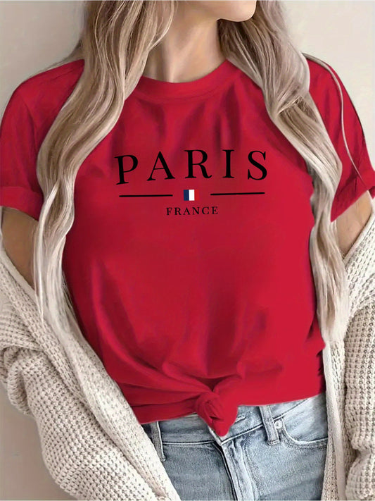 Նոր ժամանում. Փարիզյան կրեատիվ տառերով նախշերով տպագիր շապիկ, հարմար է կանանց առօրյա հագուստի, արձակուրդների, կարճ թևքերով, կլոր վզնոցով, գարնանային և ամառային, լվացքի մեքենայով լվացվող, կանացի նոր հագուստ, բազմակողմանի է զբոսանքների և սպորտի համար։