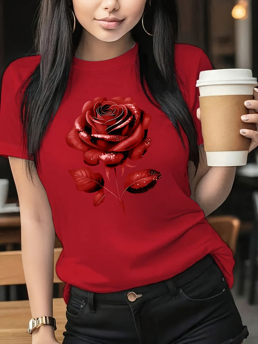 Սև վարդի նախշով կարճ թևքով, կլոր օձիքով մարզաշապիկ՝ ամառային և գարնանային, կանացի հագուստի նվեր