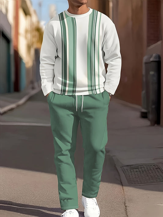 Տղամարդու առօրյա, կլոր օձիքով սվիտերի և ջոգերների հավաքածու՝ պոլիեսթերից, լվացքի մեքենայով լվացվող, տպագիր դիզայնով՝ գարուն/աշուն