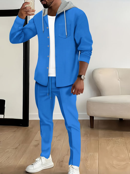 Տղամարդու առօրյա սպորտային հագուստի հավաքածու - Երկար թևքերով, կոճակներով վերնաշապիկ և ջոգեր, ձգվող գործվածքից, գարուն/աշուն հավաքածու