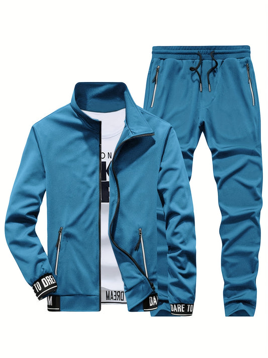 Տղամարդու առօրյա նորաձև կոստյումի հավաքածու՝ պոլիեսթերից, կանգնած օձիքով, կայծակաճարմանդով բաճկոն և լարով տաբատ՝ գարնանային/աշնանային համար