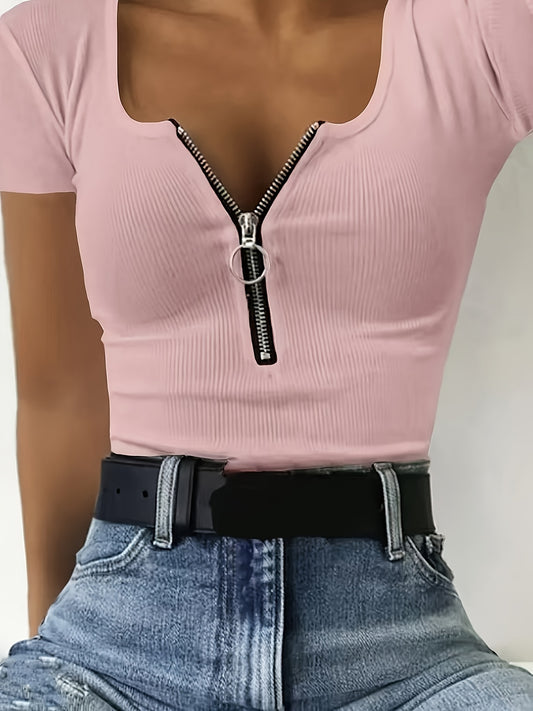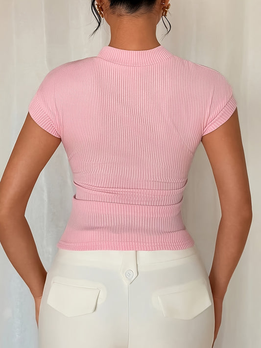 Կանացի էլեգանտ, բարձր առաձգականությամբ մարզաշապիկ - փափուկ, կլոր վզով կարճ թևքով վերնաշապիկ, միագույն, լվացվող լվացքի մեքենայով՝ գարուն-ամառ, աշուն, առօրյա և պաշտոնական հագուստի համար, սեզոնային նորաձևություն, դեկորատիվ կար, հարմարավետ տեղավորում