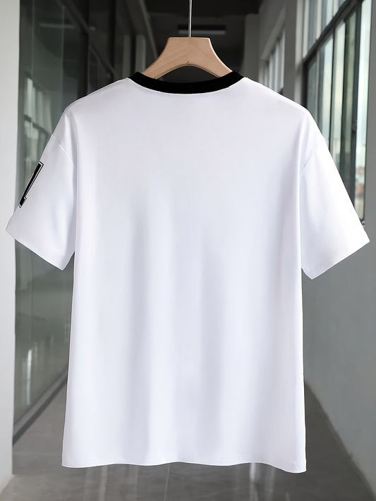 Կանացի ամառային սովորական V-աձև կարճ թևով շապիկ՝ համարձակ «91» թվային տպագրությամբ - սպիտակ և սև հակադրություն, շնչող, մեքենայով լվացվող գործվածք գարուն/ամառային հագուստի համար, ամառային շապիկներ, ամենօրյա հարմարավետության շապիկ, ինքնատիպ հակադրություն