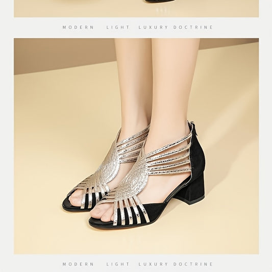 Կանացի Հռոմեական Գլադիատոր սանդալներ՝ հաստ, միջին կրունկով, բաց մատով, կայծակաճարմանդով, շնչող պոլիուրեթանային ծածկոցով, կոճային ժապավենով՝ գարնանային, առօրյա և պաշտոնական միջոցառումների համար։