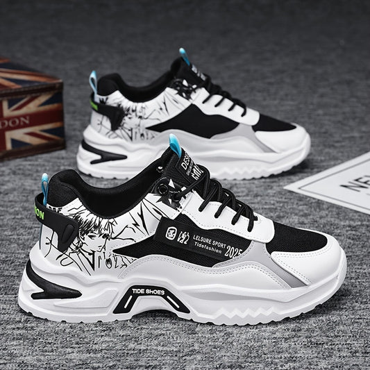 Տղամարդկանց գարնանային հավաքածու՝ սև և բեժ գույնի առօրյա սպորտային կոշիկներ՝ հակասահք, հոտակայուն, հաստ ռետինե ներբանով՝ հասակը մեծացնելու համար, կապիչներով սպորտային կոշիկներ՝ ձկան նախշերով