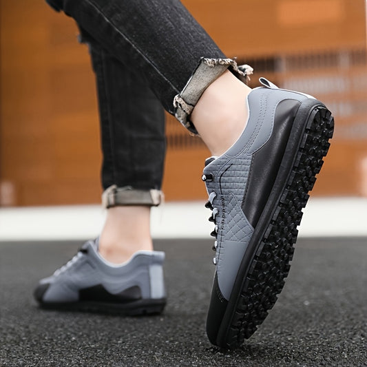 Men's Breathable Casual Sneakers - 2025 Spring New Design, Low-Top Elastic Lace-Up, Grey White PU Upper with Cushioned EVA Insole Durable PVC Sole for All-Season Outdoor Running, Gym, Daily Wear, Gym Shoes, Sleek Sporty D