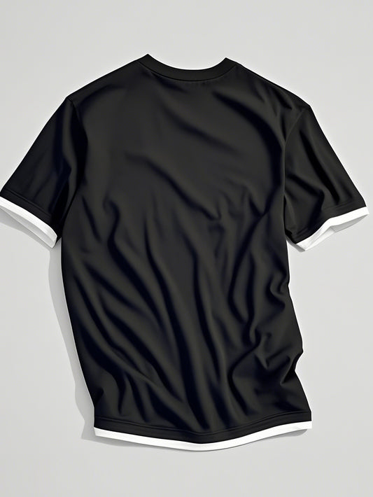 1 հատ տղամարդու գարուն-ամառ կարճ թևքով մարզաշապիկ՝ սև, կանոնավոր չափսի, կլոր վզով, շնչող գործվածք՝ մարզասրահի համար, բացօթյա ամենօրյա հագուստի համար, մարզասրահի վերնաշապիկներ, դիմացկուն ամենօրյա հագուստ, հարթ հյուսվածք
