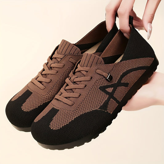Կանացի թեթև, շնչող, սահող սպորտային կոշիկներ՝ ամենօրյա, ցածր գագաթով կոշիկներ՝ տրիկոտաժե գործվածքից և դիմացկուն PVC ներբանից, հարմարավետ ներսի և դրսի գարնանային հագուստի համար, շագանակագույն, սև, կանացի սպորտային կոշիկներ