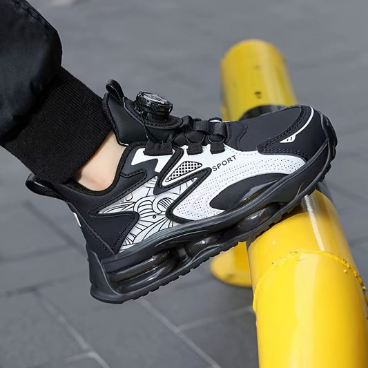 Men'S 2025 Spring Sneakers - Low-Top Lace-Up Casual Shoes with Rotating Button Closure, Breathable Mesh Lining Cushioned EVA Sole for Running, Hiking, Gym - White Black Design, Hiking Footwear, Modern Sneakers, Fabric Lin