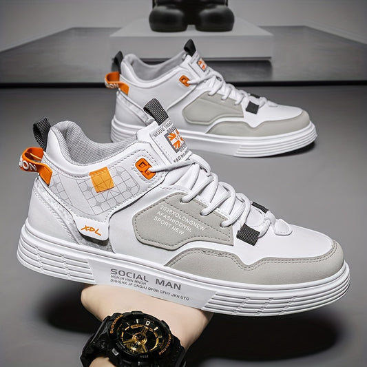 Տղամարդու առօրյա սպորտային կոշիկներ - հարմարավետ փափուկ ներբան, շնչող, կապած դիզայնով, ոճային սպիտակ, մուգ կապույտ և նարնջագույն գունային համադրությամբ, իդեալական է գարնան և աշնան համար, առօրյա կոշիկներ, ոճային առօրյա կոշիկներ, հարմարավետ կոշիկներ