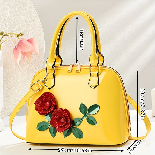 INCK KMCRK կանացի էլեգանտ սև պայուսակ՝ ոսկեգույն երանգի պարագաներով և ծաղկային զարդարանքներով - մեծ տարողունակությամբ, հանվող ուսի գոտիով, կայծակաճարմանդով փակվող, պոլիեսթերային աստառով - իդեալական է գարուն/ամառ, առօրյա և պաշտոնական առիթների համար,
