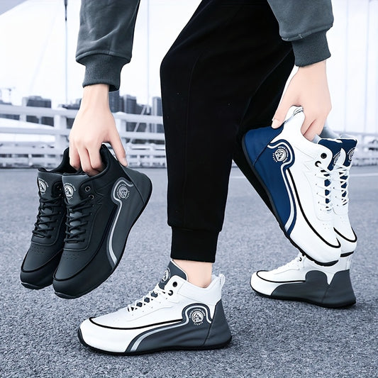 Men'S Solid Color Canvas Skate Shoes, High-Top Comfortable Non-Slip Lace-Up Sports Sneakers, Casual Athletic Footwear for Outdoor Activities, Spring/Summer/Autumn/Winter, Faux Upper, Fabric Lining, PVC Sole, Cloth Insole, Rou