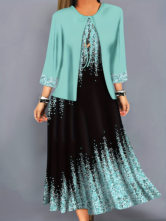 Մեծ չափս, գարուն-ամառ էլեգանտ մեծ չափսերի ծաղկային նախշերով նորաձև արձակուրդային երկար զգեստ՝ կանացի հավաքածու՝ առանց աքսեսուարների