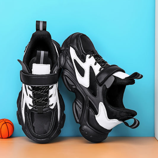 SQ8211 Տղաների ամենօրյա սպորտային կոշիկներ, փակվող, թեթև EVA ներբանով և շնչող PU վերնամասով - սև/սպիտակ գծավոր ցածր կոճով դիզայն գարնան/աշնան/ձմռան համար, ամուր, հարմարավետ կոշիկներ ակտիվ խաղերի և ամենօրյա հագուստի համար, երեխաների սպորտային կոշիկներ