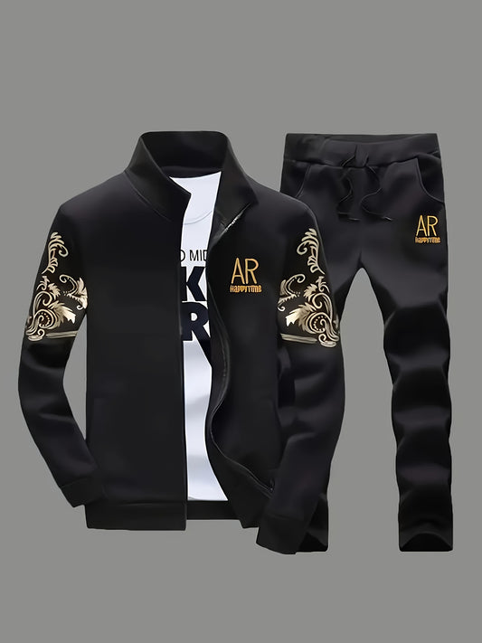 Տղամարդու AK տառերով տպագրությամբ երկար թևքերով վերնաշապիկ՝ կայծակաճարմանդով և երկար տաբատով, երկկտոր հավաքածու, թեթևակի ձգվող հարմարավետ հագուստ գարնան և աշնան համար