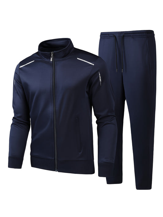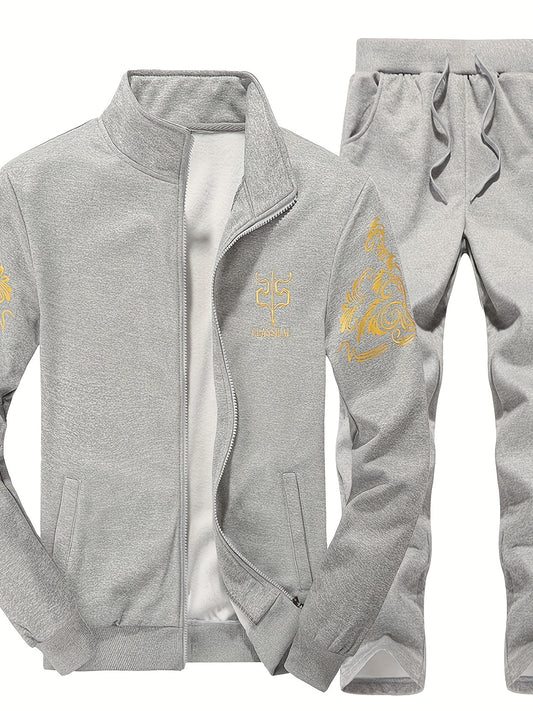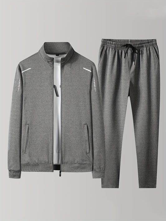 Men's Casual Zip-up Jacket And Sweatpants Set For Spring And Autumn Sports